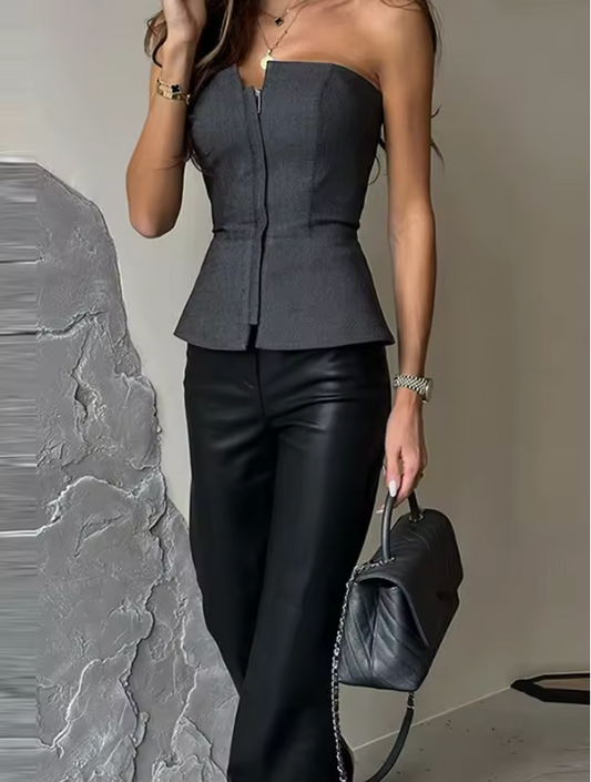 Asymmetrical Leatherlook Top
