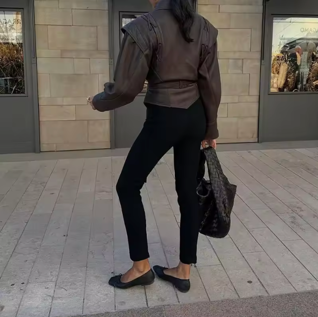 ✔ Rijke Kleur – De warme bruine kleur maakt het jasje uniek en gemakkelijk te combineren met neutrale én opvallende tinten.